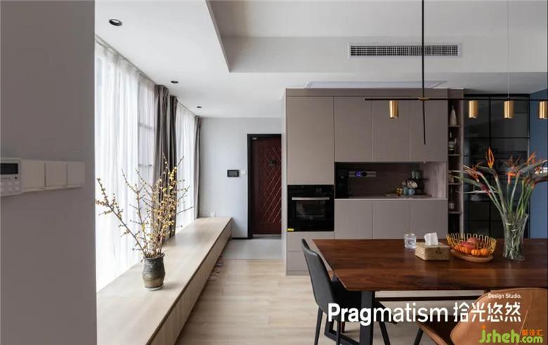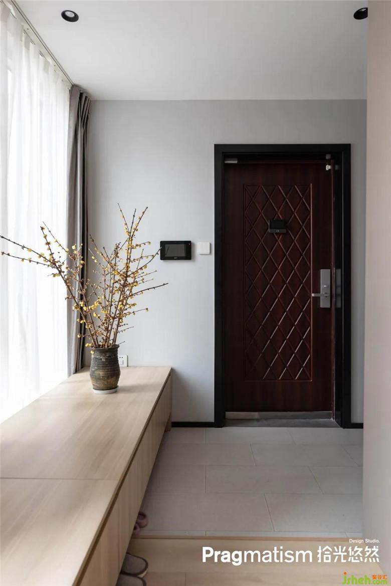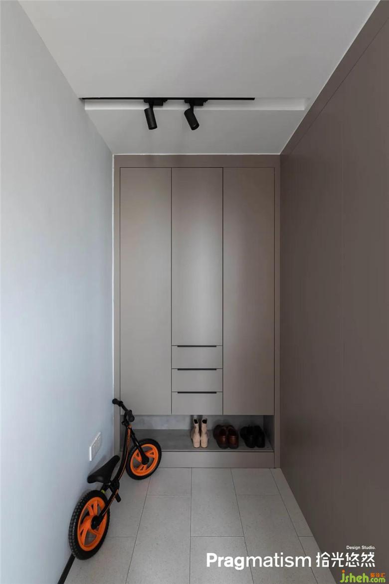 最初屋主為了讓室內(nèi)鞋和室外鞋能夠互不影響之外,設(shè)計(jì)師在入戶區(qū)域利用收納柜和不同材質(zhì)的地面區(qū)分開(kāi)兩個(gè)空間,還能對(duì)室內(nèi)空間有一點(diǎn)隱私保護(hù)作用。