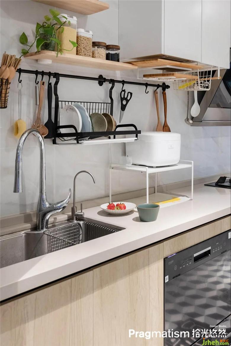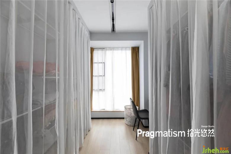 衣帽間采用了簾子和宜家 艾格特收納系統(tǒng),不僅可以節(jié)約預(yù)算,且收納功能也非常強(qiáng)大。