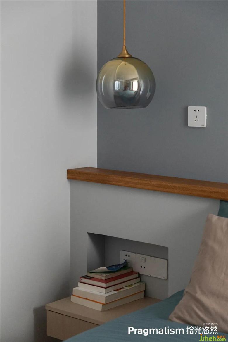 電視墻的背后便是主臥,考慮的整體墻面的統(tǒng)一性,雖然使用的是 普通門 卻采用 隱形門 的制作方式連通客廳與主臥的空間,為了讓普通門與墻面在視覺上有更好的隱形效果,避免后期門框與墻面接口裂縫。