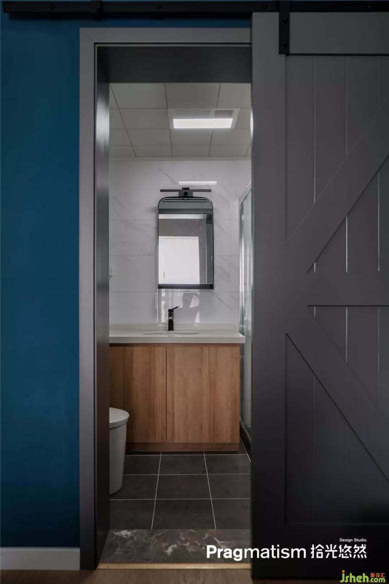 灰色啞光谷倉門后是主臥衛(wèi)生間。如果說客衛(wèi)用臺上盆是為了照顧顏值的話,主衛(wèi)用臺下盆就是主要考慮實(shí)用性。
