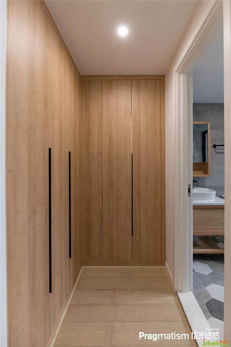 女主人比較偏愛綠色系與原木風(fēng),于是在玄關(guān)處運(yùn)用了當(dāng)下流行的牛油果綠,給每天面對電子設(shè)備的上班族緩解視覺疲勞。
