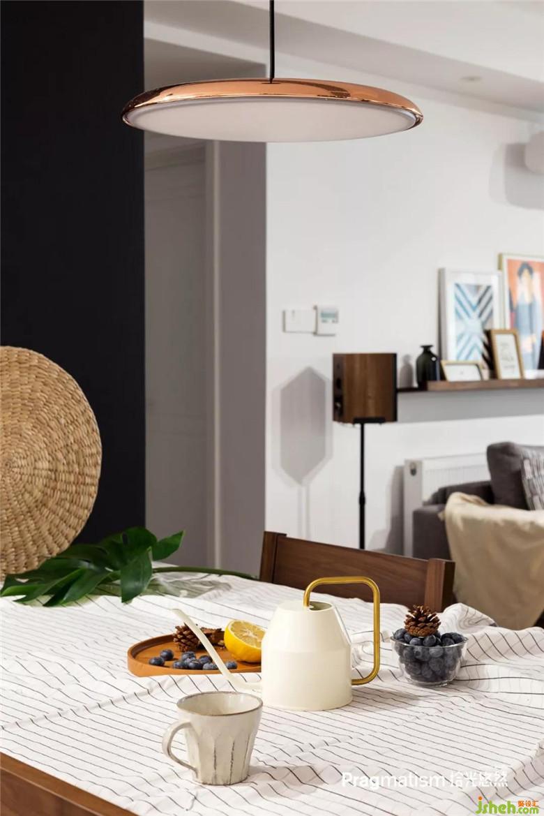 餐廳與廚房結(jié)合在了一起,黑色墻是磁力黑板漆,可以用無塵粉筆寫寫畫畫,也可以貼冰箱貼之類的磁鐵物體。