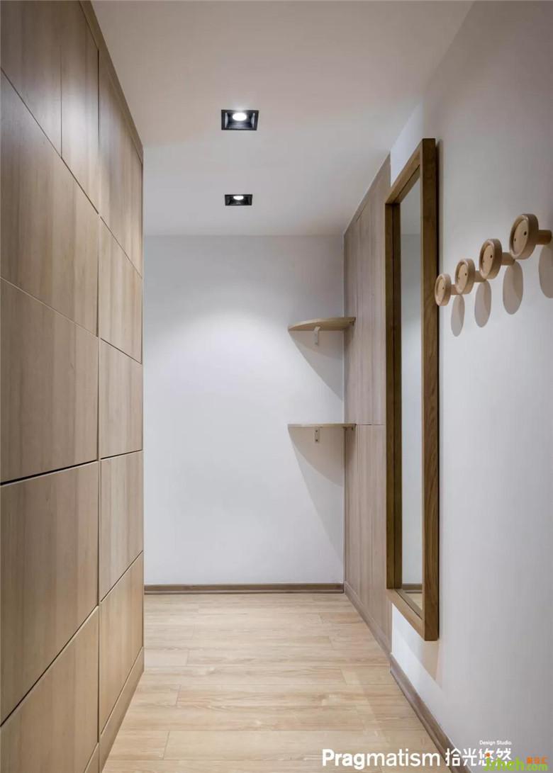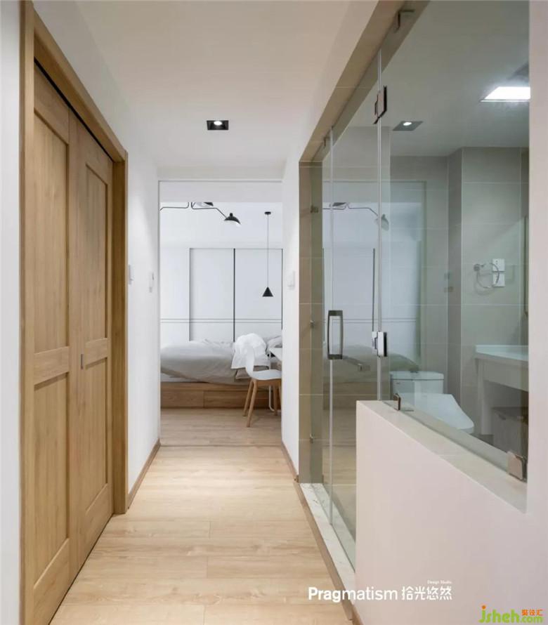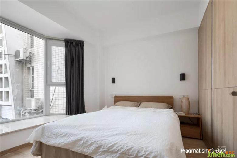 原本二樓是三間布局不合理的臥室改造以后,變成一個包含衣帽間、書房和主衛(wèi)的超級主臥。臥室簡單素雅,用重色小小點綴,燈的顏色和材質(zhì)豐富了空間觀感。