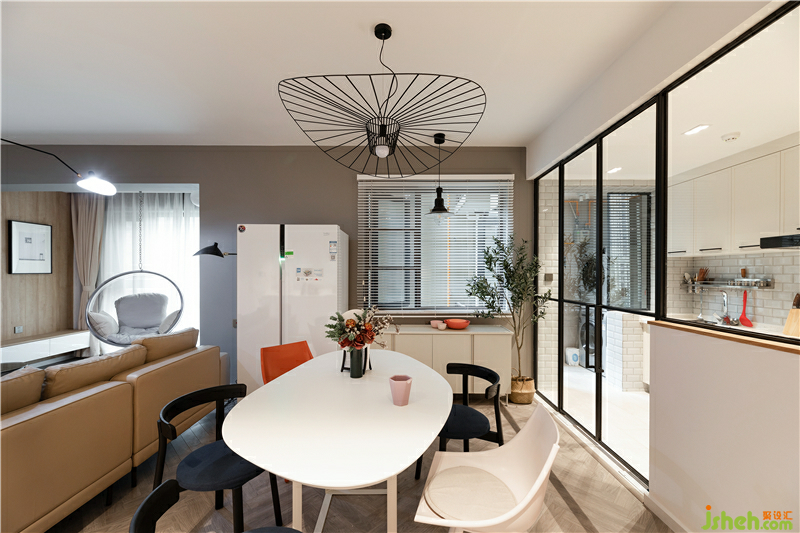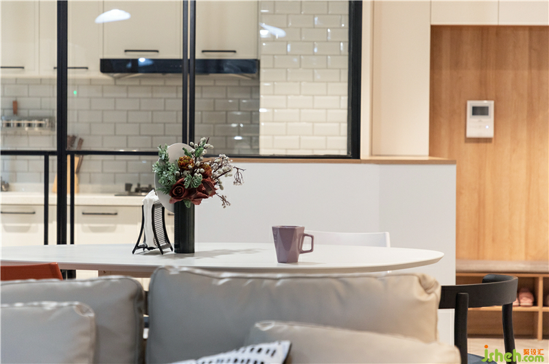 客餐廳之間沒(méi)有設(shè)置多余的隔斷,希望家人的關(guān)系可以緊密的聯(lián)系在一起,就算就餐完畢也能在一個(gè)空間里有許多交流。裝修設(shè)計(jì)
