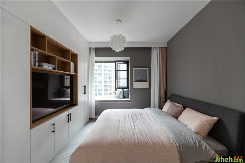 主臥主要是業(yè)主父母居住,一是有較大的儲物收納需求,二是需要一個單獨看電視娛樂的空間需求。
