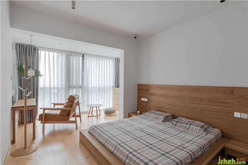 主臥的床設計的相對較矮,更像榻榻米的感覺。