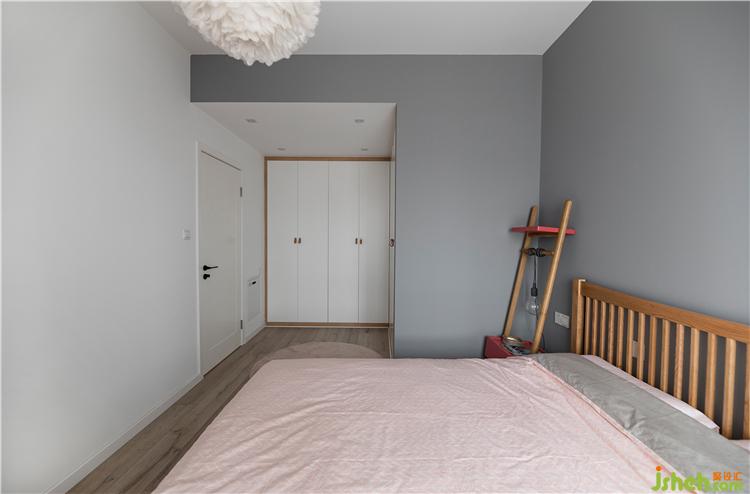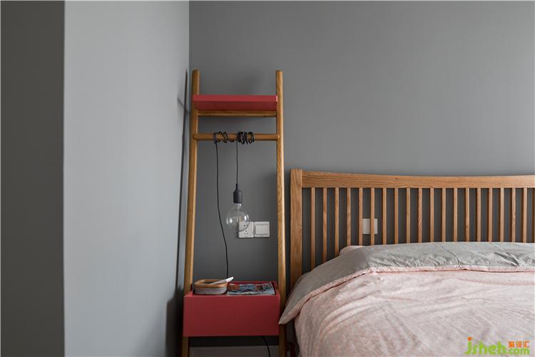 床頭柜也選的比較簡單,一邊是云梯式床頭柜,集合了床頭柜、置物架以及衣架以種功能。家裝設(shè)計(jì)