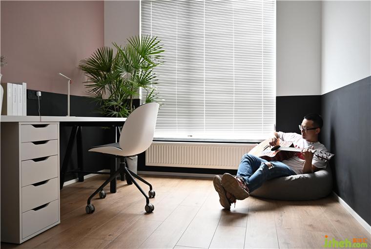 右邊角落的位置放置了懶人沙發(fā),工作完以后,可以躺著看看書,彈彈吉他,工作一天后可以得到深度的放松。