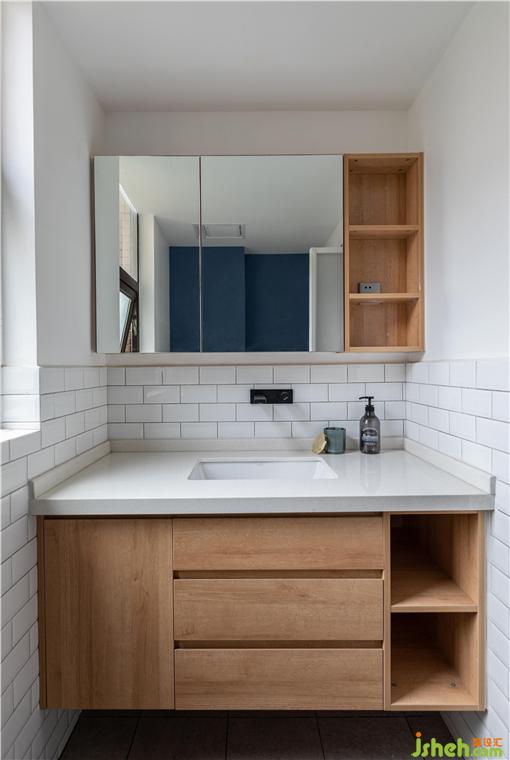 進(jìn)入主衛(wèi)的門考慮了日本的折疊,性價比顏值都很高,而且耐水耐用。因?yàn)椴辉O(shè)置淋浴對防水的要求不高,所以主衛(wèi)考慮了面包磚半墻的形式,空間顯得更精致。