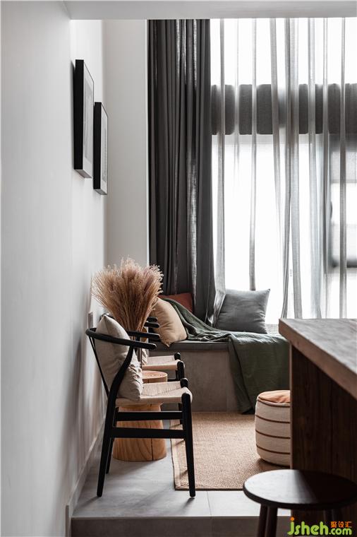 飄窗與沙發(fā)結(jié)合設(shè)計(jì)、聯(lián)系上地臺、帶置物空間的樓梯的設(shè)計(jì),界定出客廳的新范圍,也減低了原本過高的飄窗的高度,讓飄窗變成了舒適沙發(fā)。裝修設(shè)計(jì)