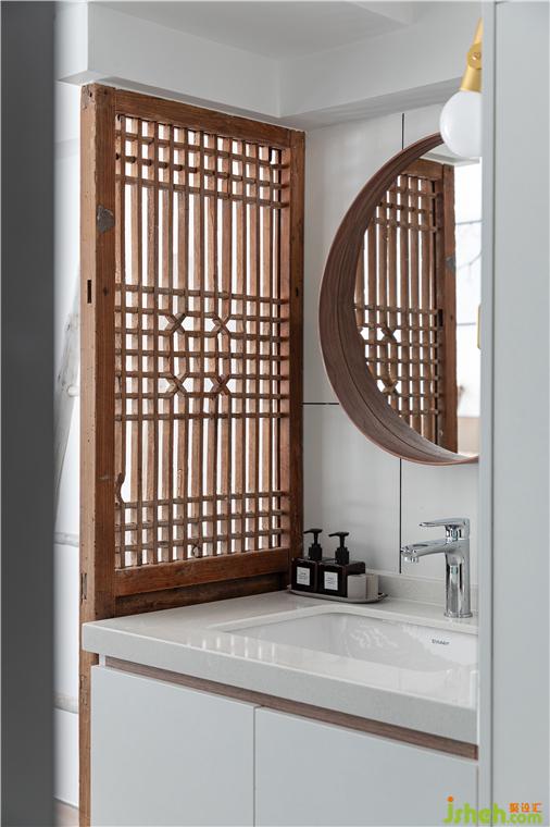 浴室柜旁的隔斷是我們從二手市場淘回來的老門板,經(jīng)過設(shè)計(jì)師“賈師傅”的一番巧手改造打磨成新的門板。從廢物搖身一變成了有顏值有故事的女(裝)同(飾)學(xué)(物),為空間增加一番獨(dú)有的東方氣質(zhì)。淋浴間與睡眠區(qū)之間設(shè)計(jì)了一扇長條形采光窗,用錘紋玻璃阻隔視線,制造出猶抱琵琶半遮面的效果,讓位于屋內(nèi)的淋浴間也能有充足的自然采光,同時保證了使用者的隱私性。