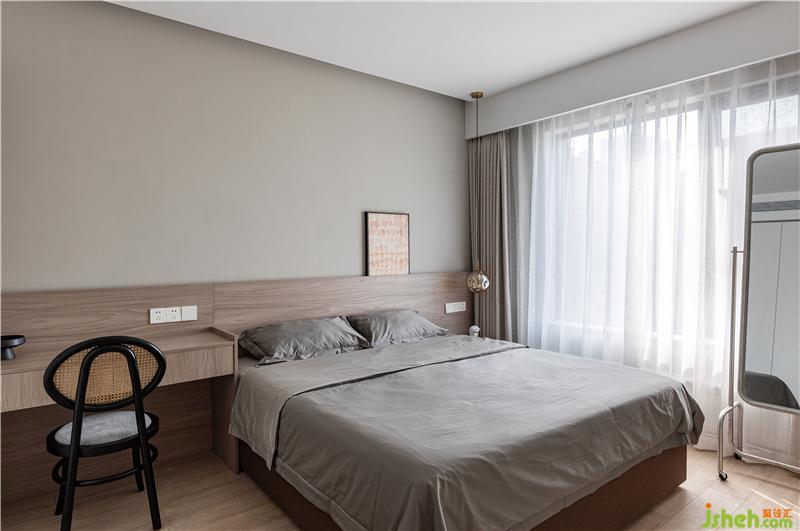室內(nèi)設(shè)計(jì)師為土老師的主臥選擇了灰色緞面的長(zhǎng)絨棉四件套,期待他們享受裸感深度的高級(jí)睡S眠。