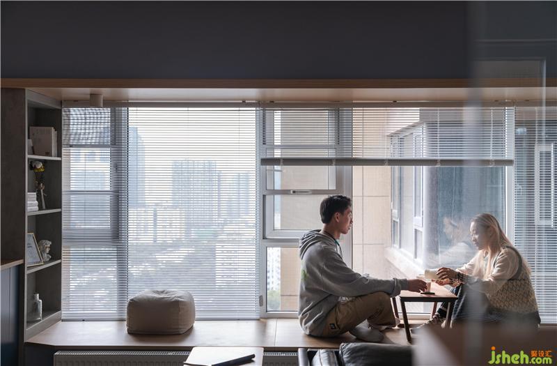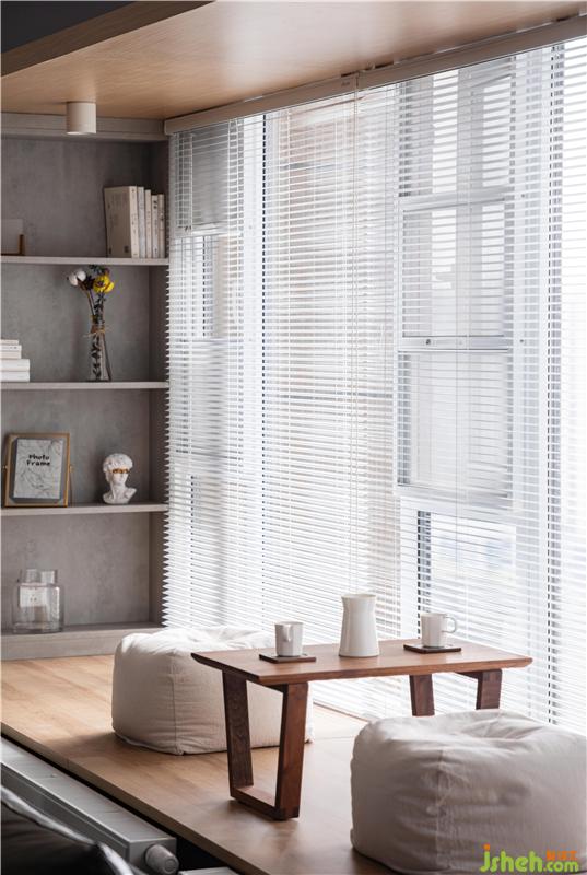 窗外正好可以看到沙河一年四季不斷變換的河景,將原本用途不大的客廳飄窗臺,我們將飄窗臺面加寬達(dá)到90厘米,這樣就形成了一個(gè)茶臺,在這里與家人、朋友一起喝茶,看風(fēng)景,看書聊天。