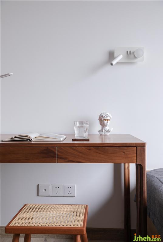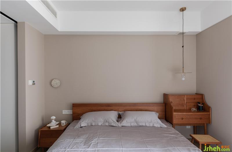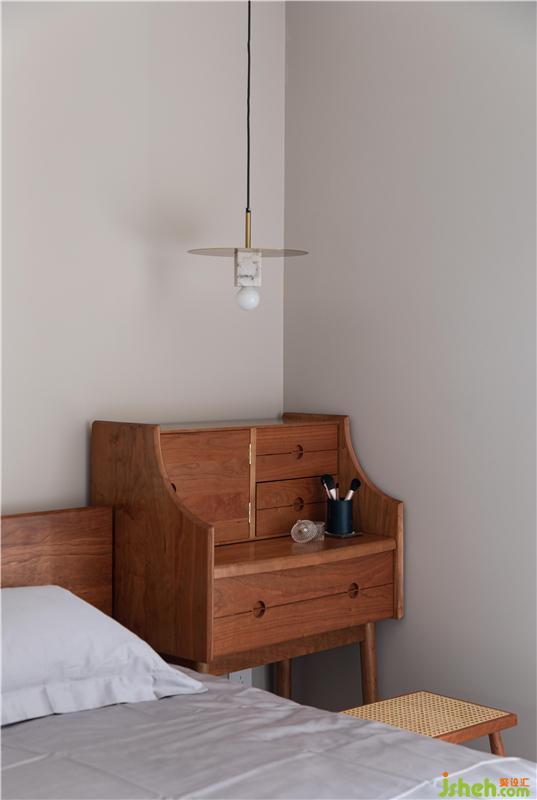 在主臥我們沒有可以設計主燈,只留有一對床頭氛圍燈和少量筒燈提升睡眠所需的氛圍感,給身體放松助眠,昏暗中透露著愜意的睡眠氛圍。