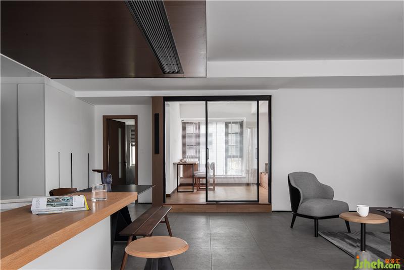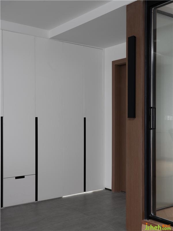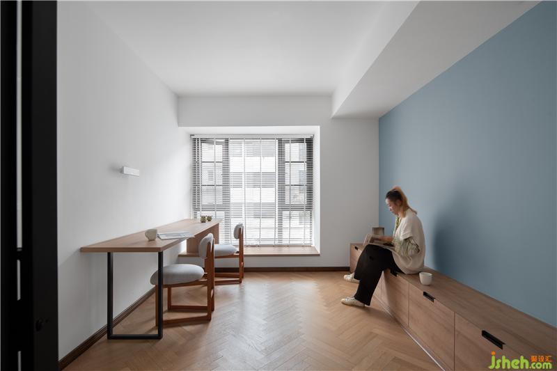 于是我們將書房門洞移位至正對客廳,拆除部分墻體使用長虹玻璃與玻璃推拉門將其替代,既是獨立的空間還能補充客餐廳區(qū)不足的光線。保留書房主要功能,讓屋主后期可以隨心所欲給其填色,慢慢把房子住成家的模樣。