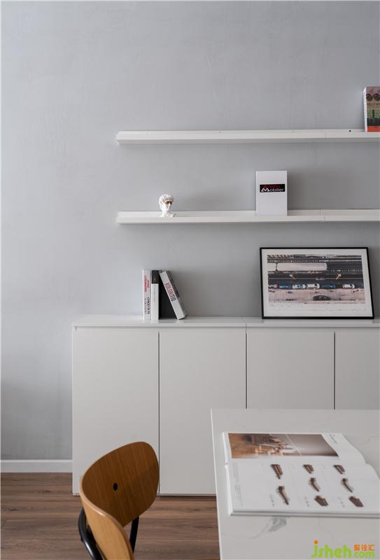 餐廳會經(jīng)常作為聚餐和小酌的聚會用途,平時兼顧工作臺,在廚房延伸的轉(zhuǎn)角柜與餐桌結(jié)合,轉(zhuǎn)角柜也用來儲備聚餐時的藏酒,飲水及小食品也能在工作時觸手可及。