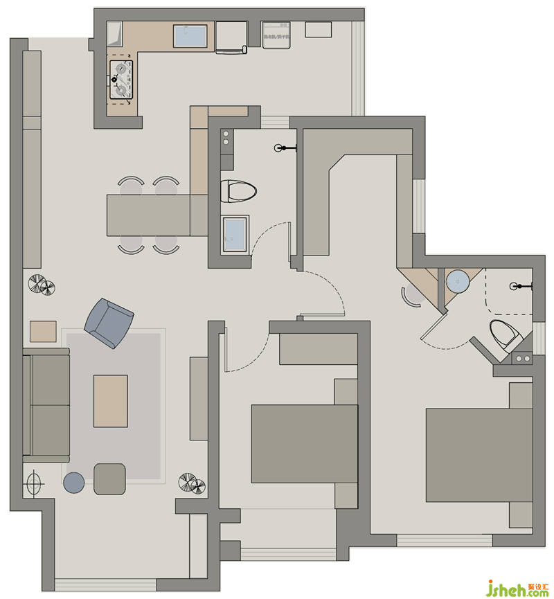 【案例戶型】2室2廳2衛(wèi)