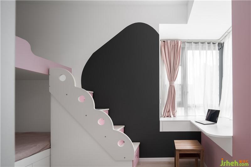 小女孩的房間一定是少女心爆棚的體現(xiàn),小朋友的房間由小朋友自己決定色彩及軟裝,在其選擇上做了黑色的分色處理,中和大面積粉色的甜膩感。借用飄窗臺(tái)的空間,將其抬高以定制柜的形式,完成了一張轉(zhuǎn)角書(shū)桌。這個(gè)空間會(huì)陪伴著屋主一家人生活至少6年,我已經(jīng)能想象到小朋友在這個(gè)粉色小城堡里哭聲笑聲,客廳傳來(lái)不熟練到熟練的鋼琴聲,承載著三代同堂的歡聲笑語(yǔ)和平凡的煙火氣。