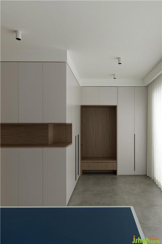 -1樓集合了晾曬功能與休閑娛樂功能。車庫作為這套房型主要入戶,是便捷途徑的不二之選,生活的儀式感從踏進家門那一刻開始。原來的-1樓采光特別差,折疊玻璃推拉門打開全屋采光,也讓居住者在視覺上更通透。