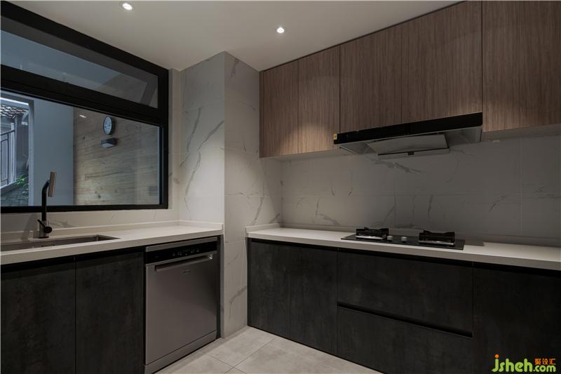 因為戶外樓梯的關系,廚房整體采光都不太理想,這也是整體1樓的弊病。所以玻璃窗是作為自然采光不足時的最優(yōu)解決辦法。當桃子姐和家人在廚房烹調時也能透過玻璃窗及時迎接歸家的親人或來訪的客人。