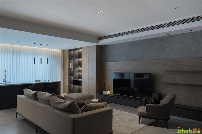 屋主們非常明確自己在色彩上的喜好,灰白棕做主基調,簡潔理性的空間里利用暖色光源中和冷清感。入住后的他們迎接了一個新生命 — 黑色法斗碳花入住,從此-1樓有了一方它的小天地,每天歸家時一定能迎上一雙炙熱且真誠的眼睛。