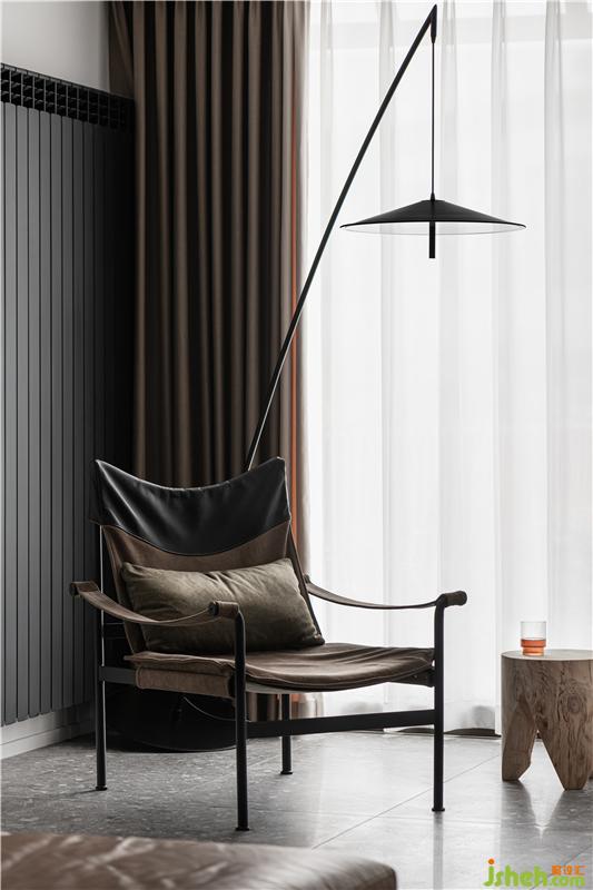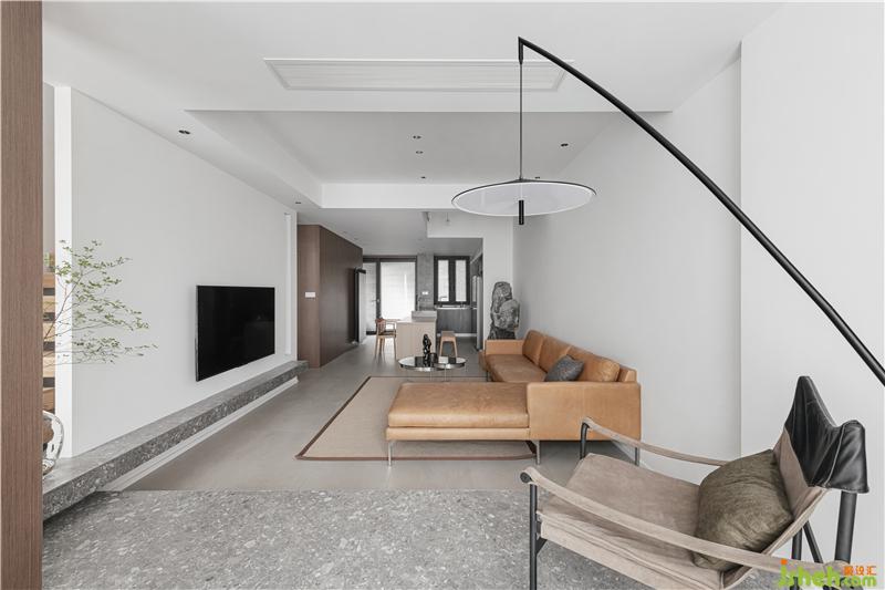 雖然客廳開間的絕對(duì)尺寸因樓梯而相對(duì)變小,但不同材質(zhì)的體塊相互堆疊、穿插,構(gòu)成立體的組合。半隱半透,家居設(shè)計(jì)不僅沒有讓空間從視覺上變小,反而變得靈動(dòng)、有趣。機(jī)頂盒以及線材都隱藏到了背后,清爽整潔。原本搶眼的承重柱,在體塊的組合中得到了弱化,成為了其中之一。
