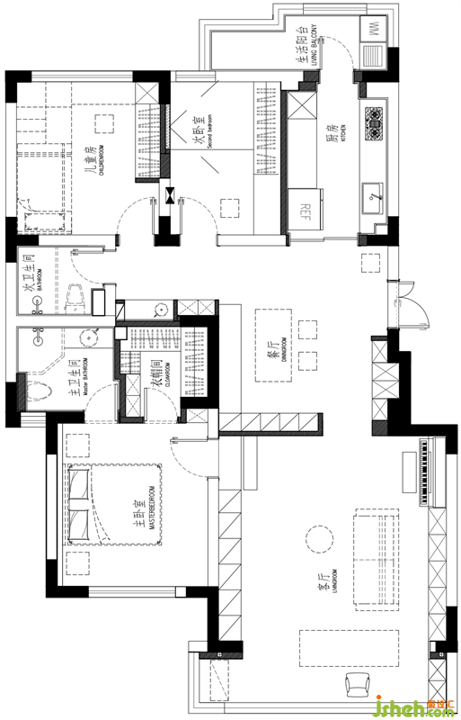 但此類老房子存在的最大缺點便是空間布局不合理,很多承重墻無法拆除,客餐廳比例失調(diào),餐廳偏小,客廳偏大,主臥室收納不夠,生活陽臺偏小。