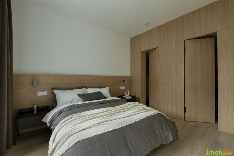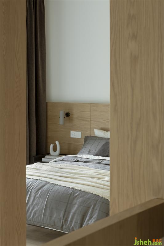 主臥原本需要通過一條悠黑狹長通道進(jìn)入,移門后,便省出了一間獨(dú)立衣帽間。主衛(wèi)生間和衣帽間的進(jìn)門的墻體做了隱形門處理,避免主衛(wèi)門對床的尷尬。