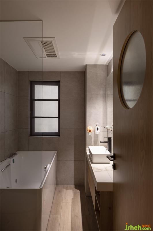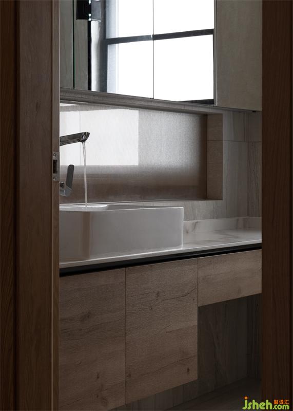 成都家居設計,在主臥與主衛(wèi)洗手臺隔斷留一扇窗,利用長虹磨砂玻璃的優(yōu)點,讓室外的自然光可以緩緩的進入室內(nèi),解決因原始房型造成采光不足的情況。