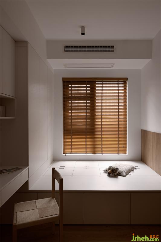 榻榻米房間作為成長性的空間,現(xiàn)階段主要是收納物品及屋主辦公。孩子年紀稍大些時,再作為兒童房使用。