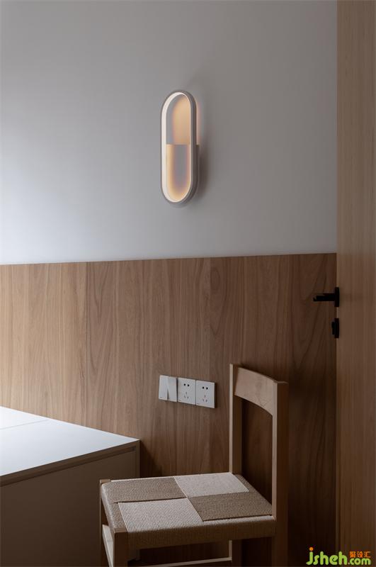 面層為榆木木飾面的吊頂陰角線,在留白的墻面多了一份溫度,與地面的木材恰好呼應。