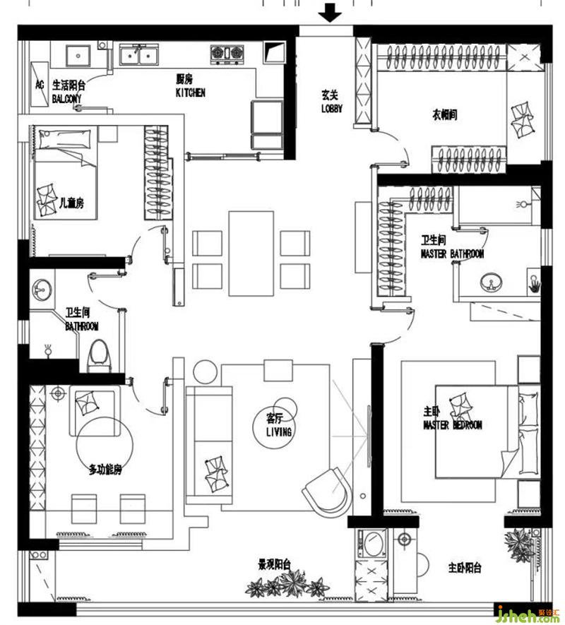 ? 對(duì)房屋的硬裝改造主要對(duì)室外景觀陽臺(tái)區(qū)域的納入與分割,重組后的陽臺(tái)帶給主臥、客廳、多功能室更多的空間