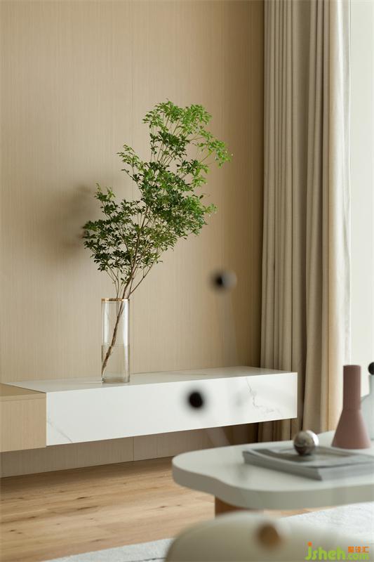 客餐廳墻面乳膠漆部分我們選擇了溫柔的奶茶色。