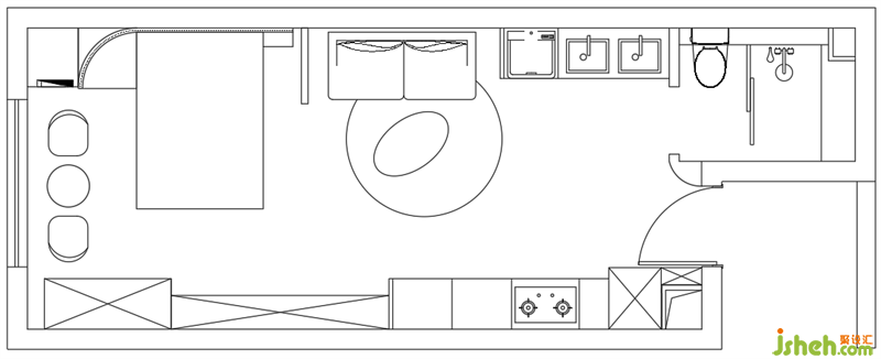 ? 原始戶型為常見的規(guī)整長(zhǎng)條形,層高3.2m不宜做雙層。