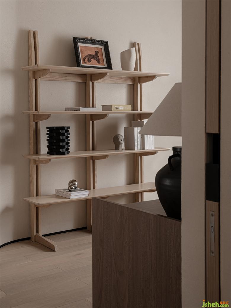 沒有大體量的柜體設(shè)計,讓空間還原到舒適的尺度。書桌靠臥室極近,就算屋主專注地查閱資料到深夜,起身只需幾步,就能到達自己的睡眠空間。