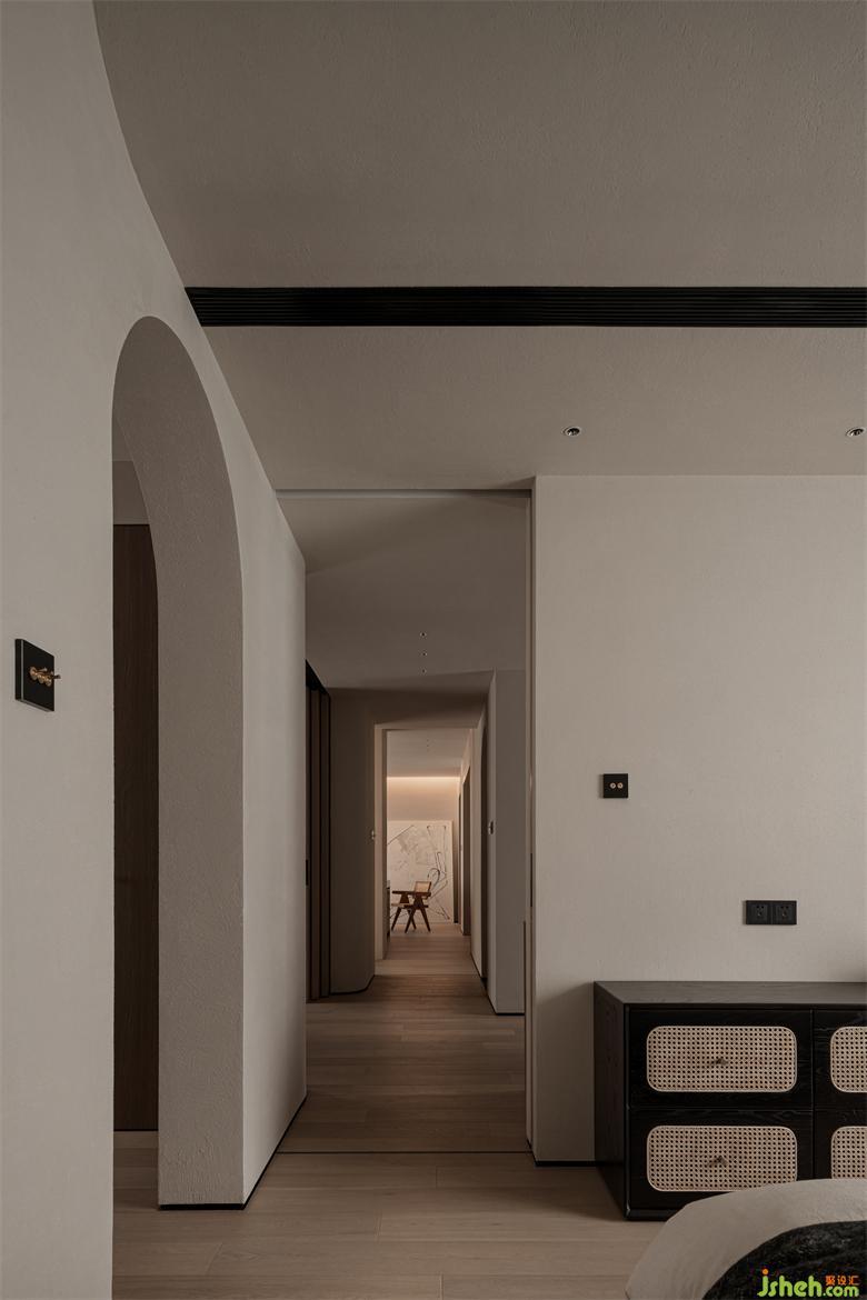 如今走廊兩側(cè),不再是冰冷厚實的墻面,成都家裝設(shè)計取而代之的是兩間功能區(qū)域隔廊相望。