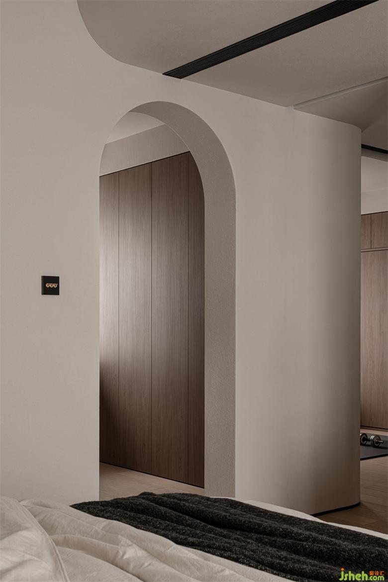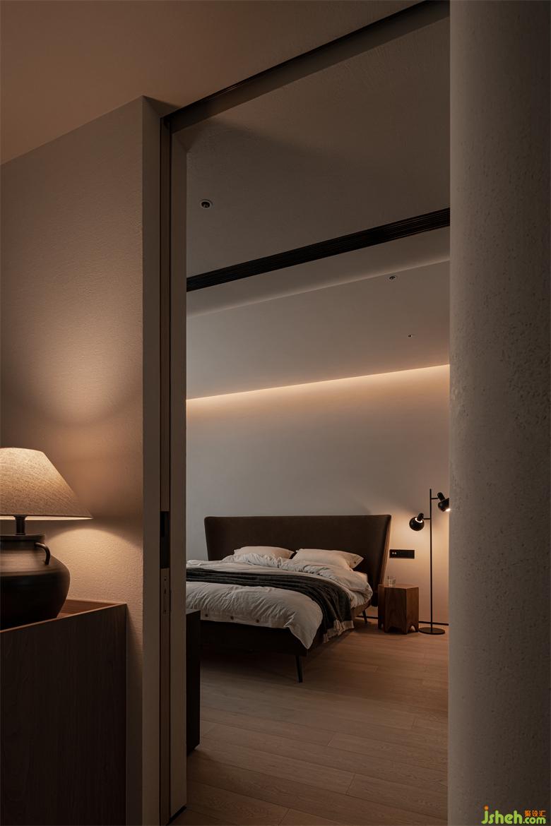 主臥延續(xù)整體空間設(shè)計(jì)的自然樸素質(zhì)感,成都家裝設(shè)計(jì)穿過(guò)走廊與公共區(qū)域連通,跨過(guò)一道道門洞,讓生活的儀式氛圍劇增。