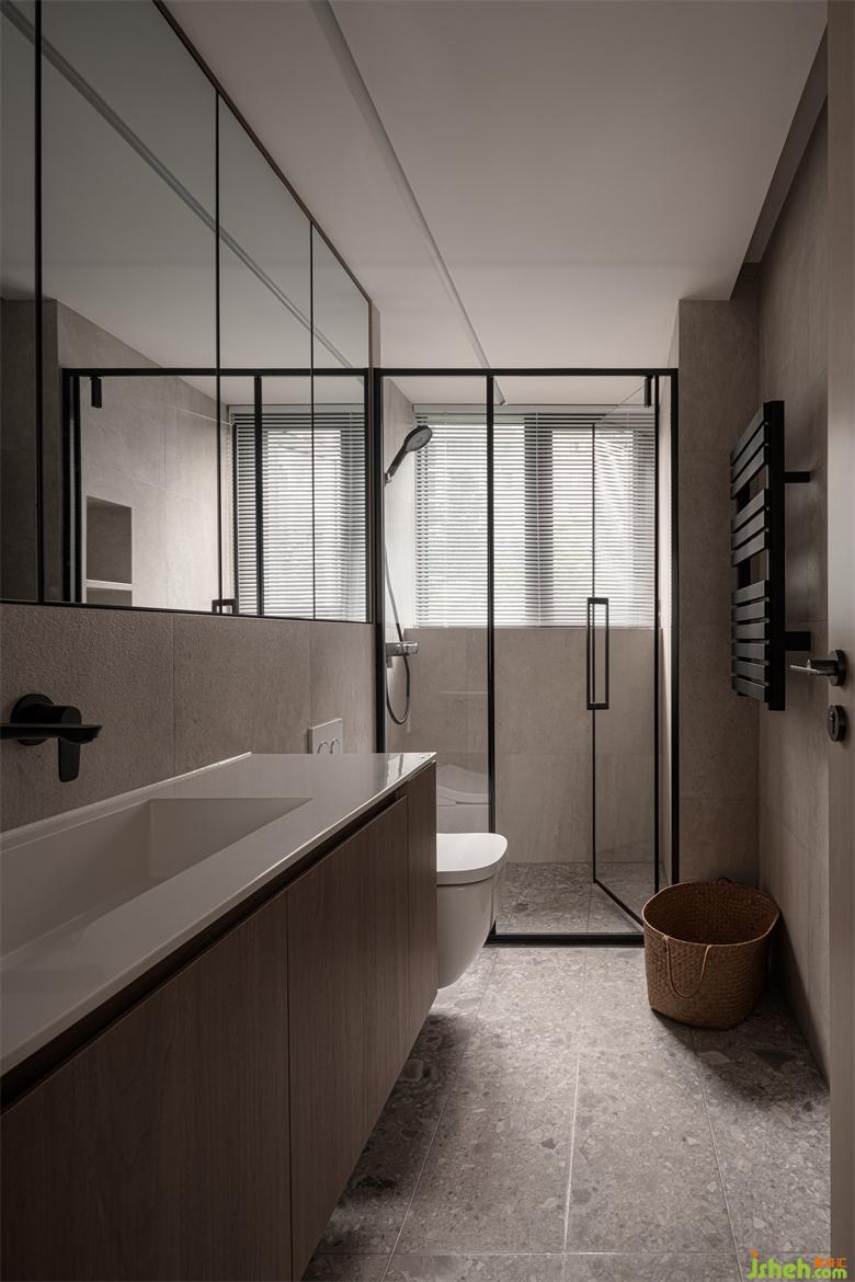 衛(wèi)生間同樣沿襲了整個(gè)空間的氛圍基調(diào)。