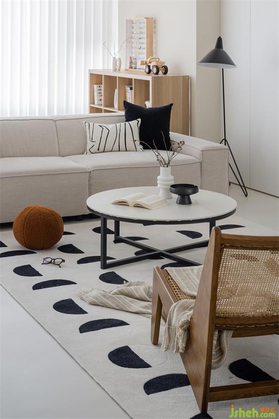 奶白、奶咖、淺駝、原木,柔和的同色系讓空間里的人倍感溫暖治愈。放下茶幾,這兒是一個人的閱讀區(qū);家裝設計移走茶幾,柔軟的地毯包容更多的慵懶姿態(tài),大人笑著聊天、小朋友擺弄著小火車,剛烤好的面包放在一旁,空氣中彌漫著濃濃的香甜味兒。