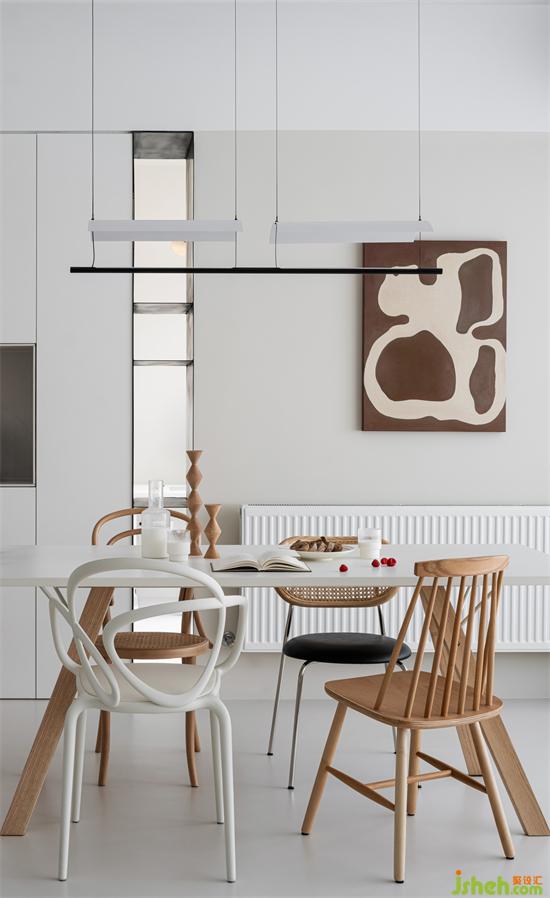 造型各異的餐椅,家裝設(shè)計(jì)讓餐廳多了一份尋寶般的驚喜。三餐四季、家庭工作組成了生活的一大半,精心對待才更可能發(fā)現(xiàn)平淡中的驚喜。