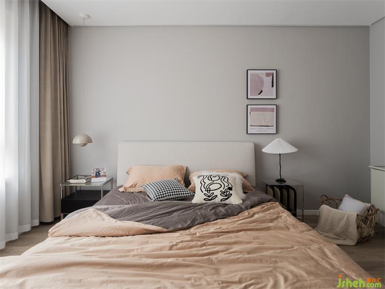 臥室以溫馨、寧靜為主基調(diào)。家裝設(shè)計(jì)木地板換為更接近原木色的,墻漆、床品及窗簾都選擇低飽和度,床頭柜、燈具及裝飾畫都是小體量的,不會產(chǎn)生厚重的壓抑感,對于提升睡眠質(zhì)量也有一定裨益。