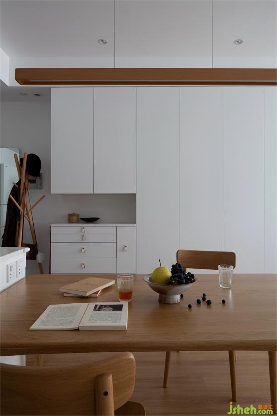 屋主的物品不多,但除主臥衣柜外,物品都集中在客廳的收納柜,舊房改造因此本案做了精細(xì)的收納分類,層高、寬度等都經(jīng)過精密的計算。