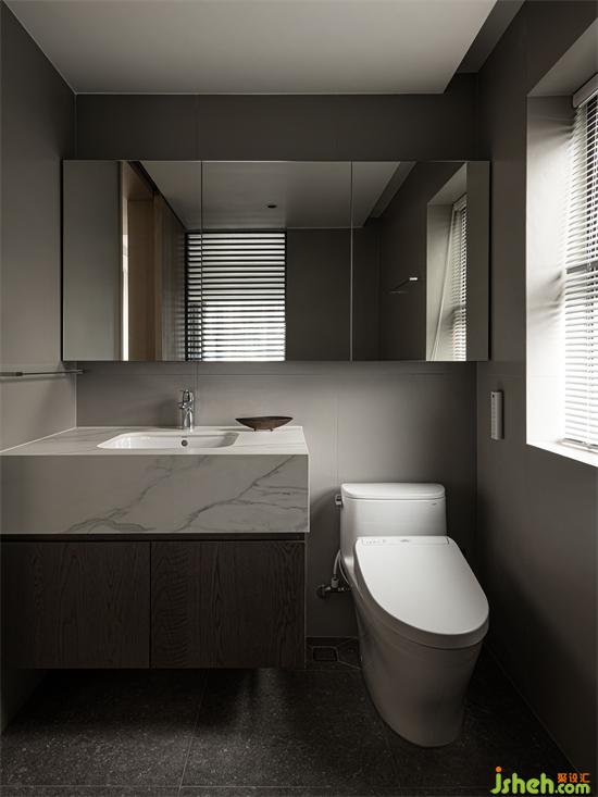 主衛(wèi)和主臥之間采用橫向木格柵,使兩空間存在曖昧的互動。沐浴溫暖,緩解一天的疲勞,家裝設(shè)計以完美的姿態(tài)迎接第二天的到來。