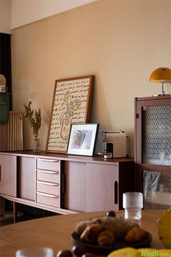 黃花梨地板拼成人字形,家裝設(shè)計搭配米黃色的墻面與墨綠色墻裙,是那個時代人們的記憶。深沉溫柔的色彩,仿佛從瞬間將媽媽帶回上海曾經(jīng)的家。