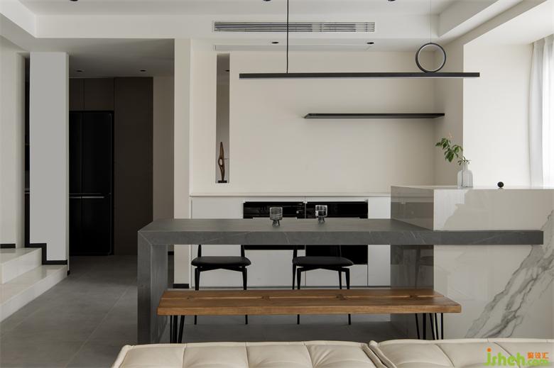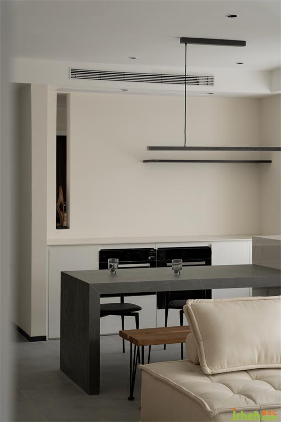 對于喜歡自己DIY家具的業(yè)主來說,餐廳的巖板餐桌就是他們的杰作之一。
