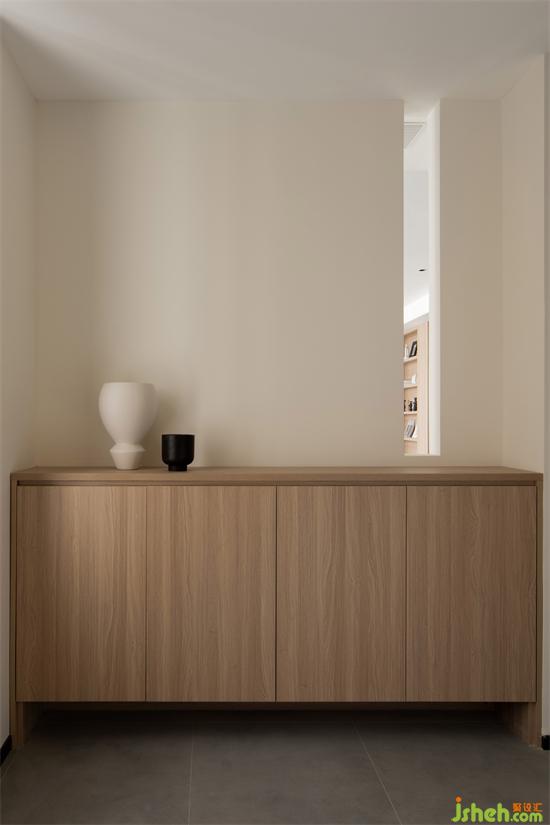 ?. 原本的玄關位置能夠一眼看到客廳,家裝設計師在玄關、客廳設計了墻面隔檔
