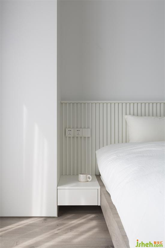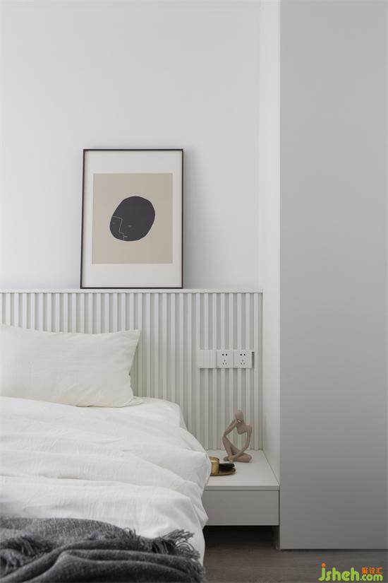 床頭與兩邊的衣柜融為一體,采用墻面同樣的顏色,成都家裝設(shè)計(jì)減少凸出的衣柜給人帶來(lái)的壓抑感。