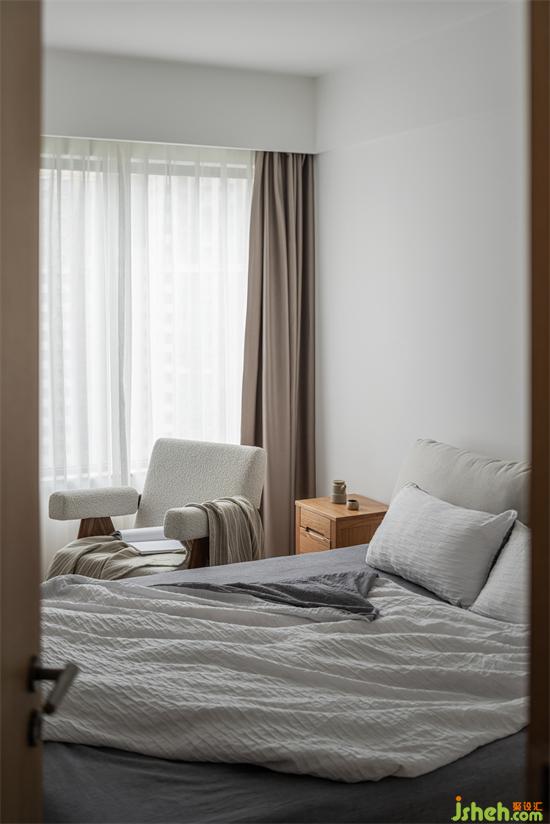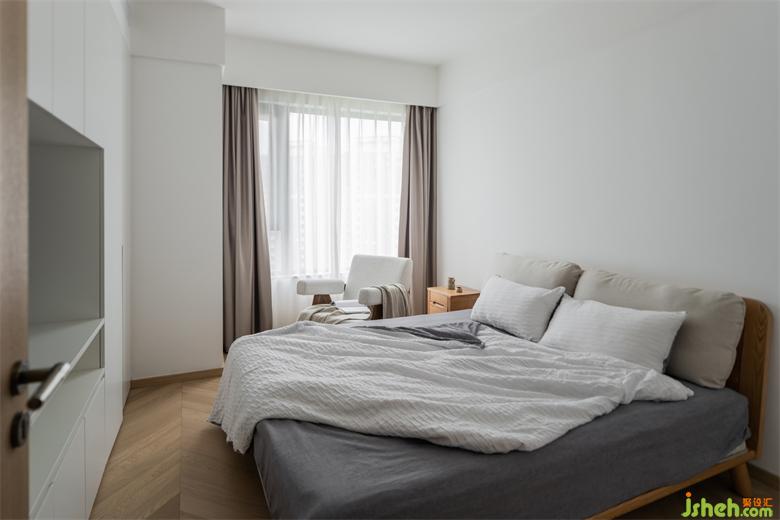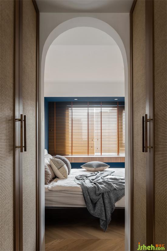衣帽間向衛(wèi)生間擴(kuò)張,增加了臥室的衣物儲(chǔ)物需求,家裝設(shè)計(jì)同樣采用藤編柜門,為屋主營(yíng)造舒適自然的環(huán)境。