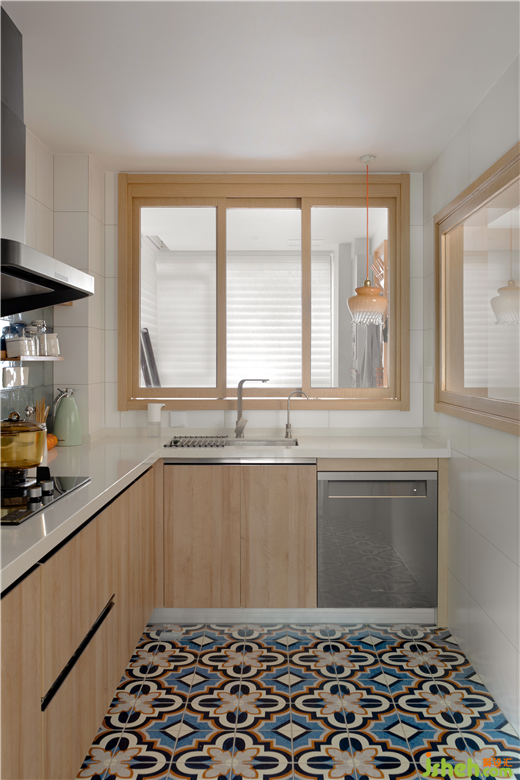 女主人希望家里每個(gè)空間都是有互動(dòng)的,成都蜀郡家裝設(shè)計(jì)在客廳里不止能聞到廚房傳來的香味,也能看到做菜的人。與設(shè)計(jì)師溝通后,一致決定在這兒開扇窗。
