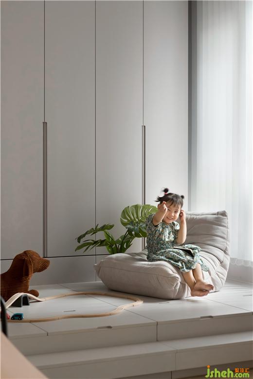 (1)充分利用客廳及休閑陽臺(tái),成都中環(huán)島裝修將其改造為集閱讀、辦公、玩耍、休息功能為一體的空間,同時(shí)能夠承載小朋友成長(zhǎng)過程中的興趣愛好